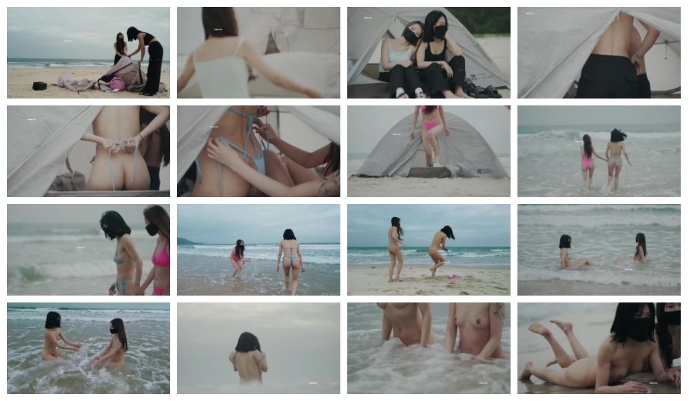 人气露出女神,【cikaimoon】,海边露营散步,油彩比基尼,海浪拍打裸体嬉戏,美景佳人堪比大片